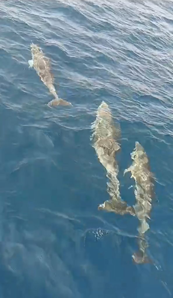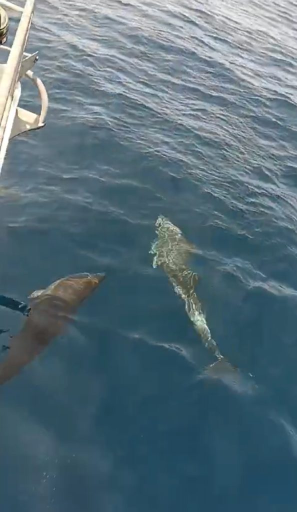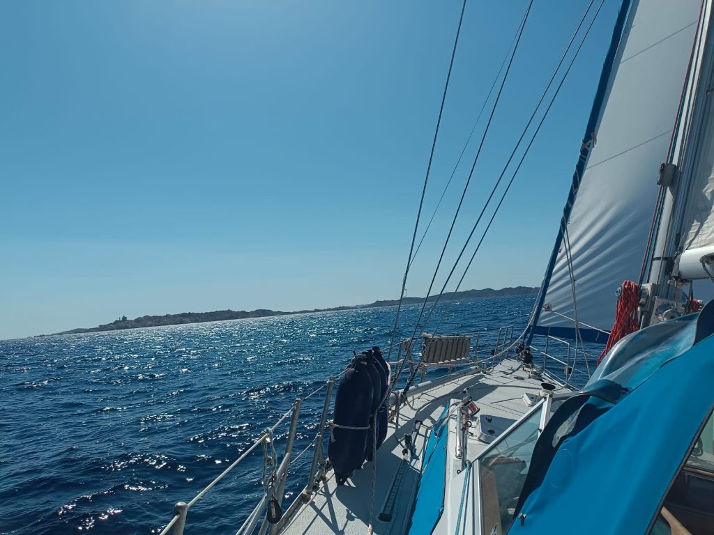 Morgens gingen wir alle nochmal ins Wasser, denn heute war unser Ziel schon Olbia, der Mistral kündigt sich an. Stefans Urlaubszeit bei uns auf den Boot ging zu Ende, sein Flug war am Samstag und somit war das sein letzter Meerkontakt für längere Zeit. Wie es so oft ist, die Ruhe vor dem Sturm, war es auch am Donnerstag, leider mussten wir Motoren. Somit konnten wir aber unseren Autopiloten nochmal testen und es wurde eine gemütliche und warme Überfahrt. Das absolute Highlight der Fahrt, es kamen nochmal Delphine zu uns ans Boot. Diesmal waren es 3 und sie spielten eine ganze Weile mit unserer Bugwelle, so hatte Stefan noch einen schönen Abschluss.