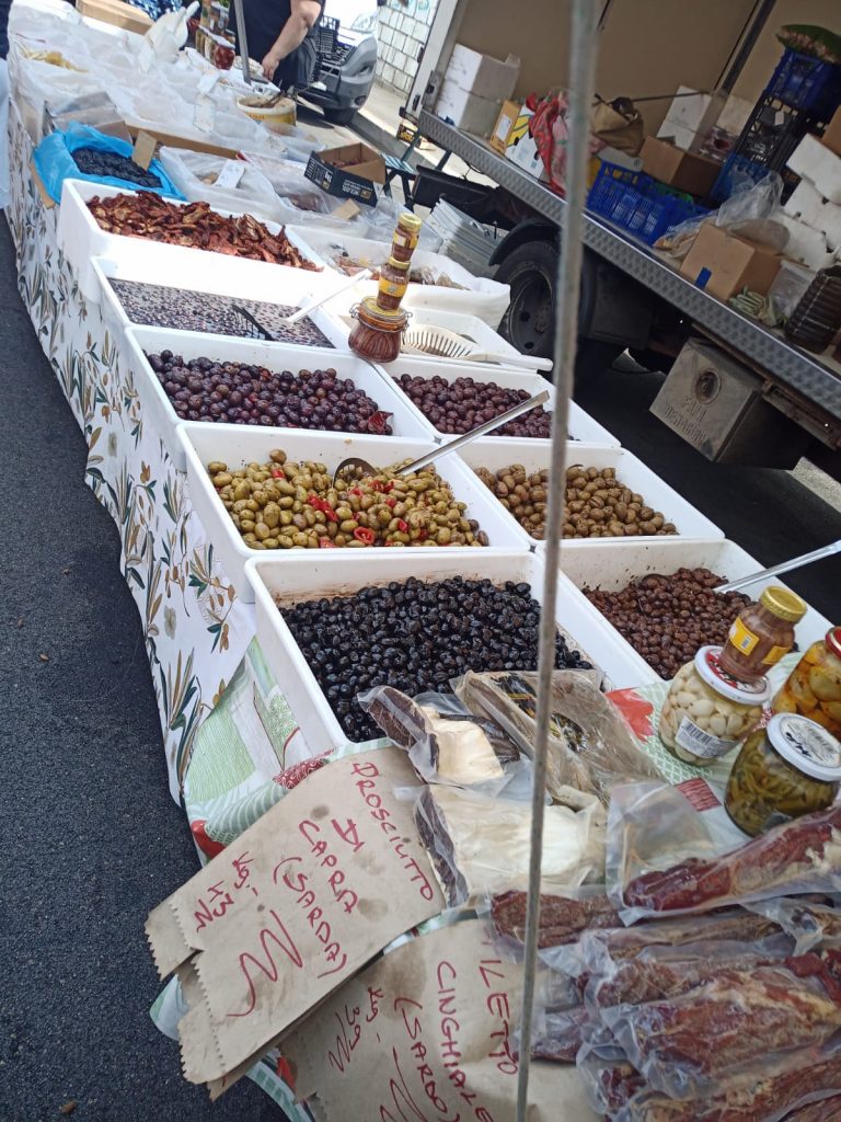 Natürlich kam uns wieder an der engsten Stelle bei der Einfahrt nach Olbia eine Fähre entgegen, das Gleiche wie letztes Jahr. Aber wir wussten ja was wir tun mussten, rechts ranfahren und warten. An der Kaimauer in Olbia fanden wir zum Glück gleich nen Platz, den Letzten. Es hatten wohl mehr die Idee die paar Tage, in denen der Mistral durchgeht, sich in Olbia einzunisten. Am Freitag machten wir ein bisschen Sightseeing und Museum in Olbia, war echt schön und irgendwie war oder ist Olbia dieses Jahr einladender als letztes Jahr. Am Samstagmorgen ging es für Stefan auf den Flughafen und für uns zum Markt, Vorräte auffüllen. Ein schöner, großer Markt mit viel frischen Obst und Gemüse und viel anderen Zeug.