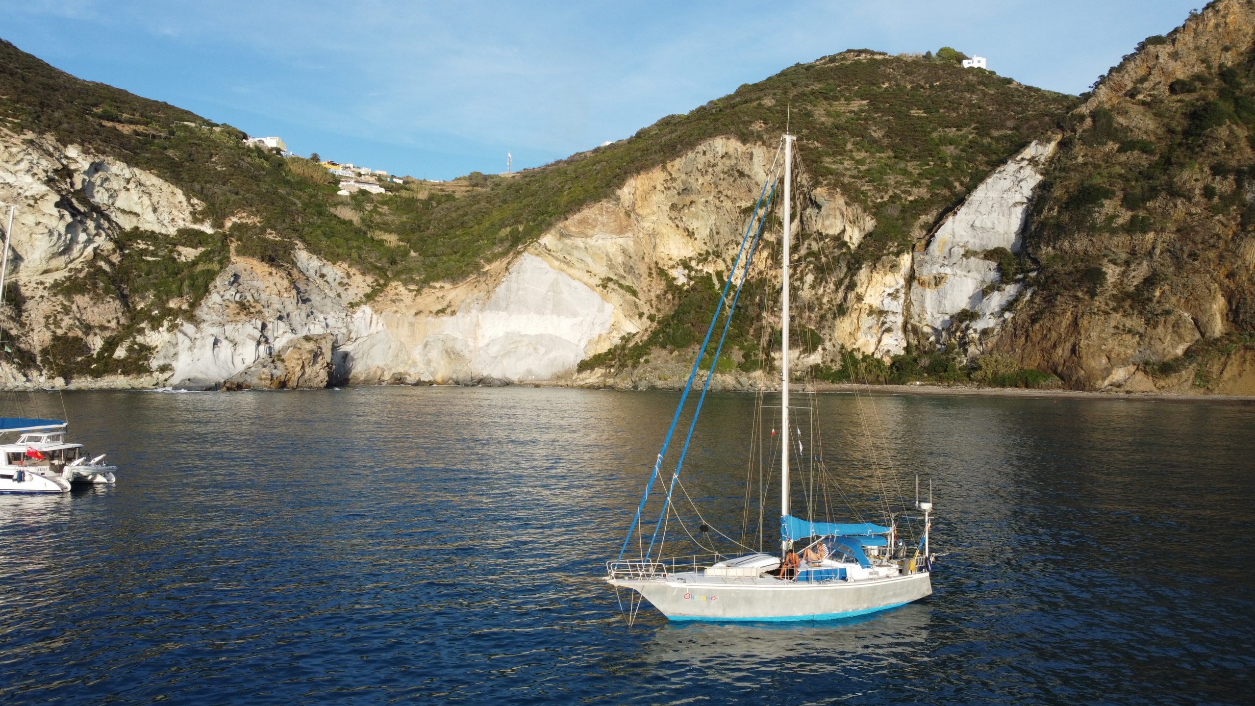 Die Woche Ponza ist vorüber und sie hat so geendet, wie sie angefangen hat. Wir haben eine Traumwoche hinter uns. Ponza eine wirklich schöne Insel. Wir hatten aber auch großes Glück mit dem Wetter. Es war Sonne satt und der Wind war auch o.k., so dass wir die fünf Nächte vor Anker in Ruhe verbringen konnten. Am Donnerstag machten wir einen Abstecher nach Ponza-Stadt, sehr idyllisch und nette Menschen. Es waren kaum Touristen unterwegs, ist halt Nachsaison, wobei im Sommer (Juli/Aug) hier die Hölle los sein muss. Wir shoppten ein wenig, Gemüse (mit Unterhaltung), kleines Andenken für Ute und Markus kaufte sich einen neuen Angelhaken für Tuna.
